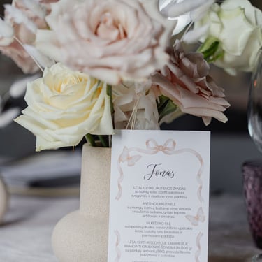Prieš kurdami dekorus išsiaiškiname Jūsų norus. Jei pageidaujate konkrečių spalvų, ar temos, suderinsime visas detales tarpusavyje, kad būtų vientisas šventės stilius arba pasiūlysime savo variantus. Papuošime svečių stalus, saldų stalą arba namelį-karietą, mažylių stalą, foto zoną, kt. Po šventės Jums taip pat nereikės niekuo rūpintis, nes mes nupuošime šventės vietą.